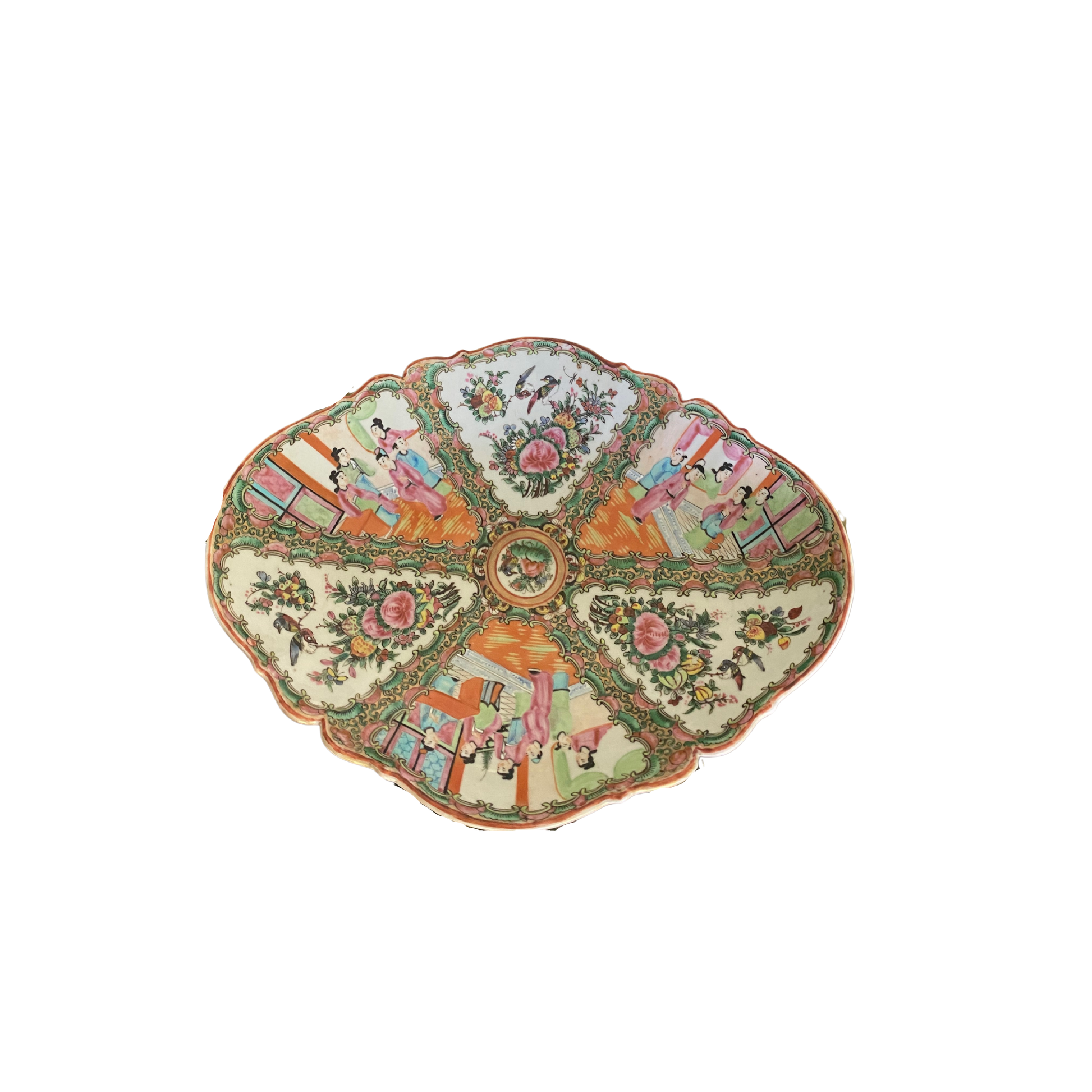 1890 Antique Rose Medallion Pedestal Shallow Bowl