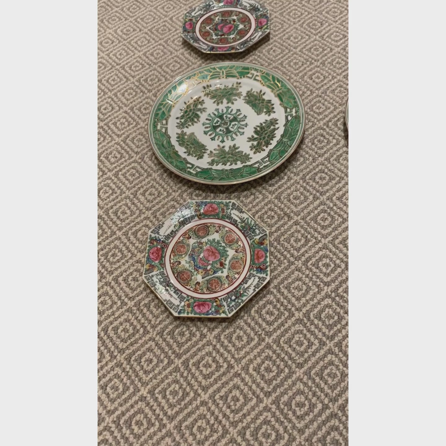 We love octagonal Rose Medallion plates. They are an extremely rare find! These 1920s plates would look perfect styled on your shelves!