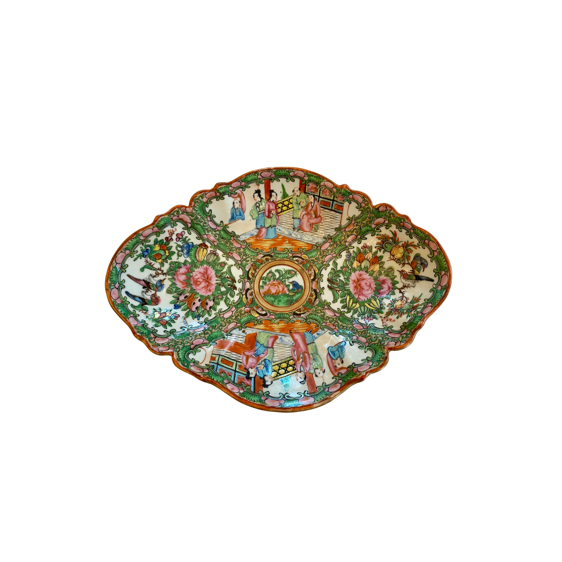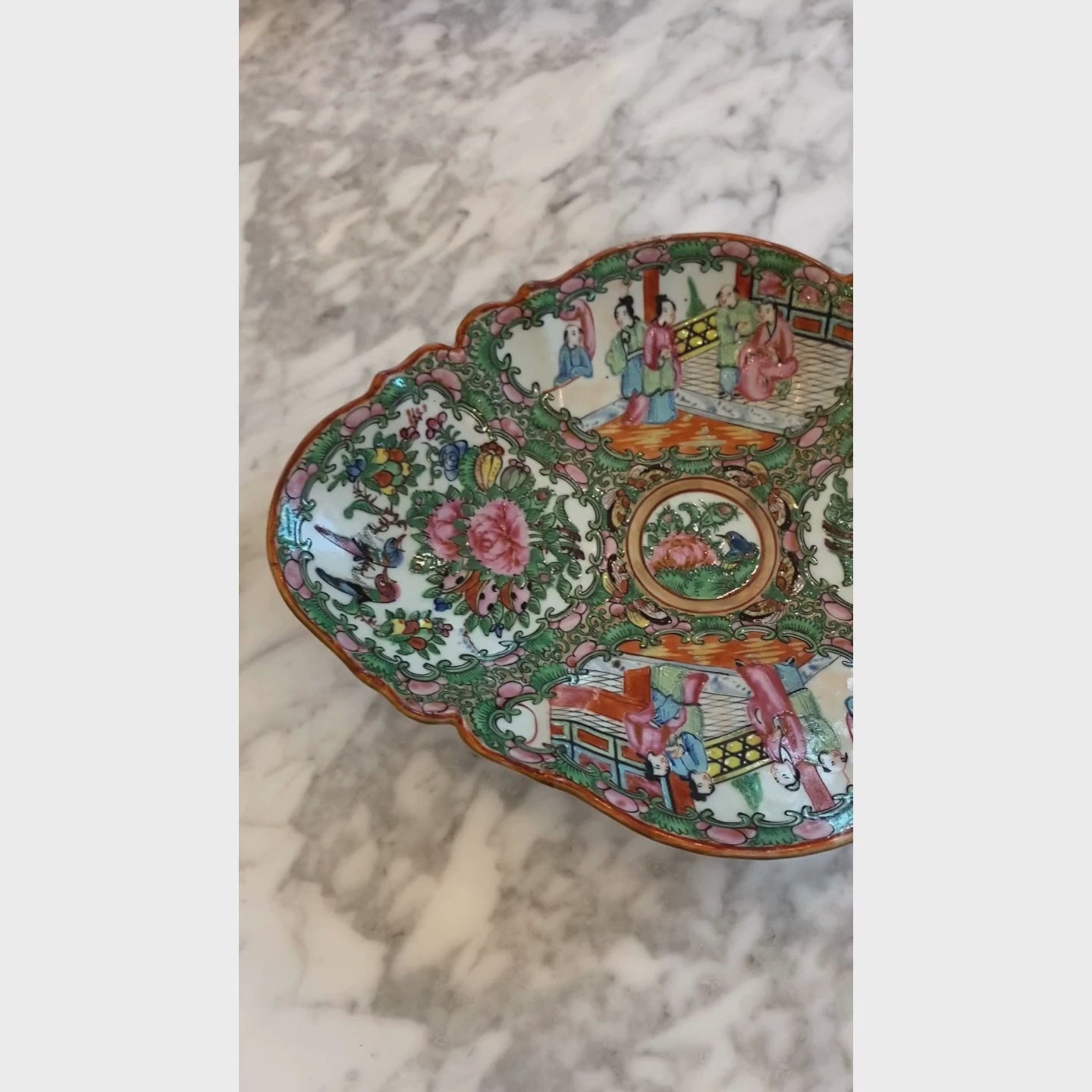 Antique Rose Medallion Scalloped Pedestal Dish
