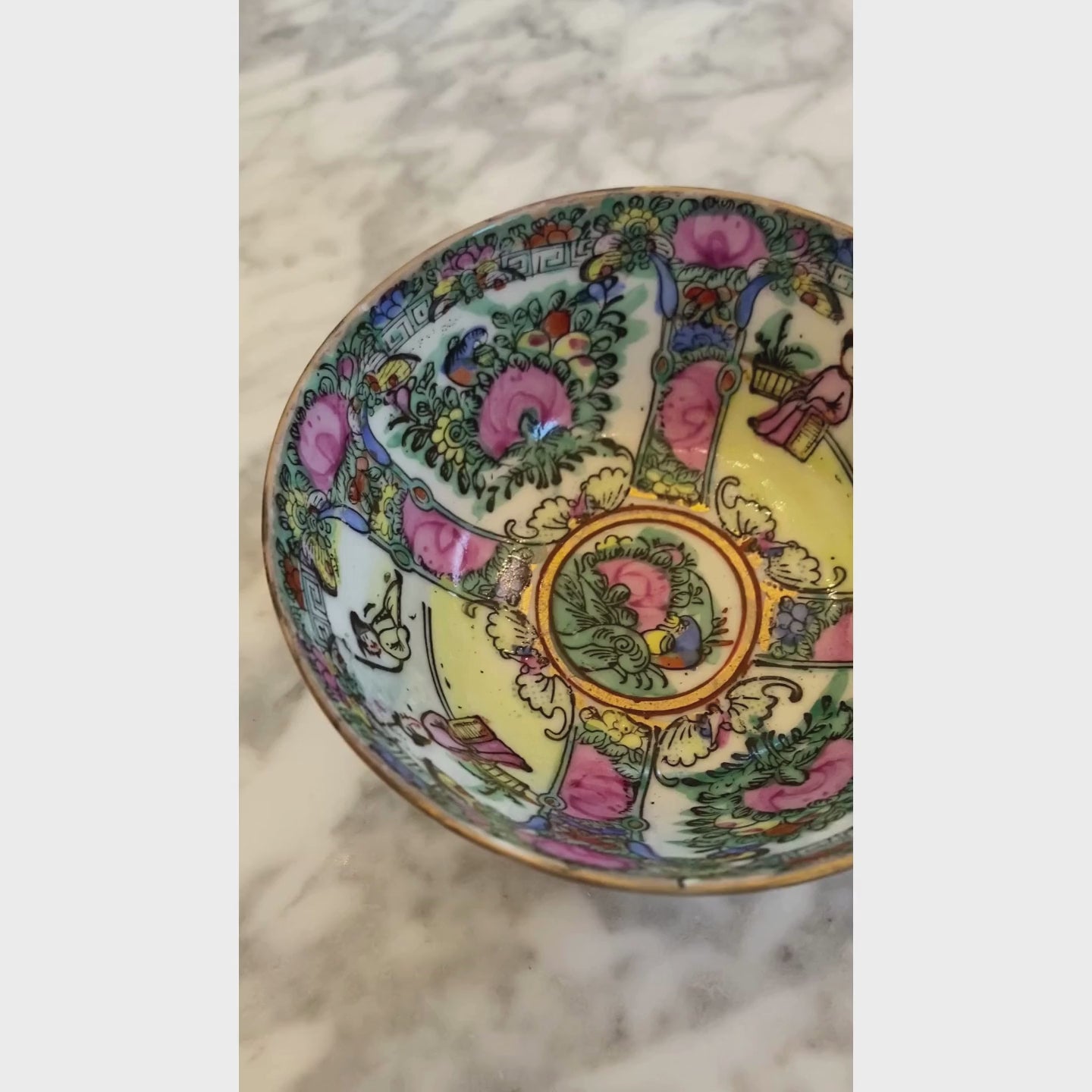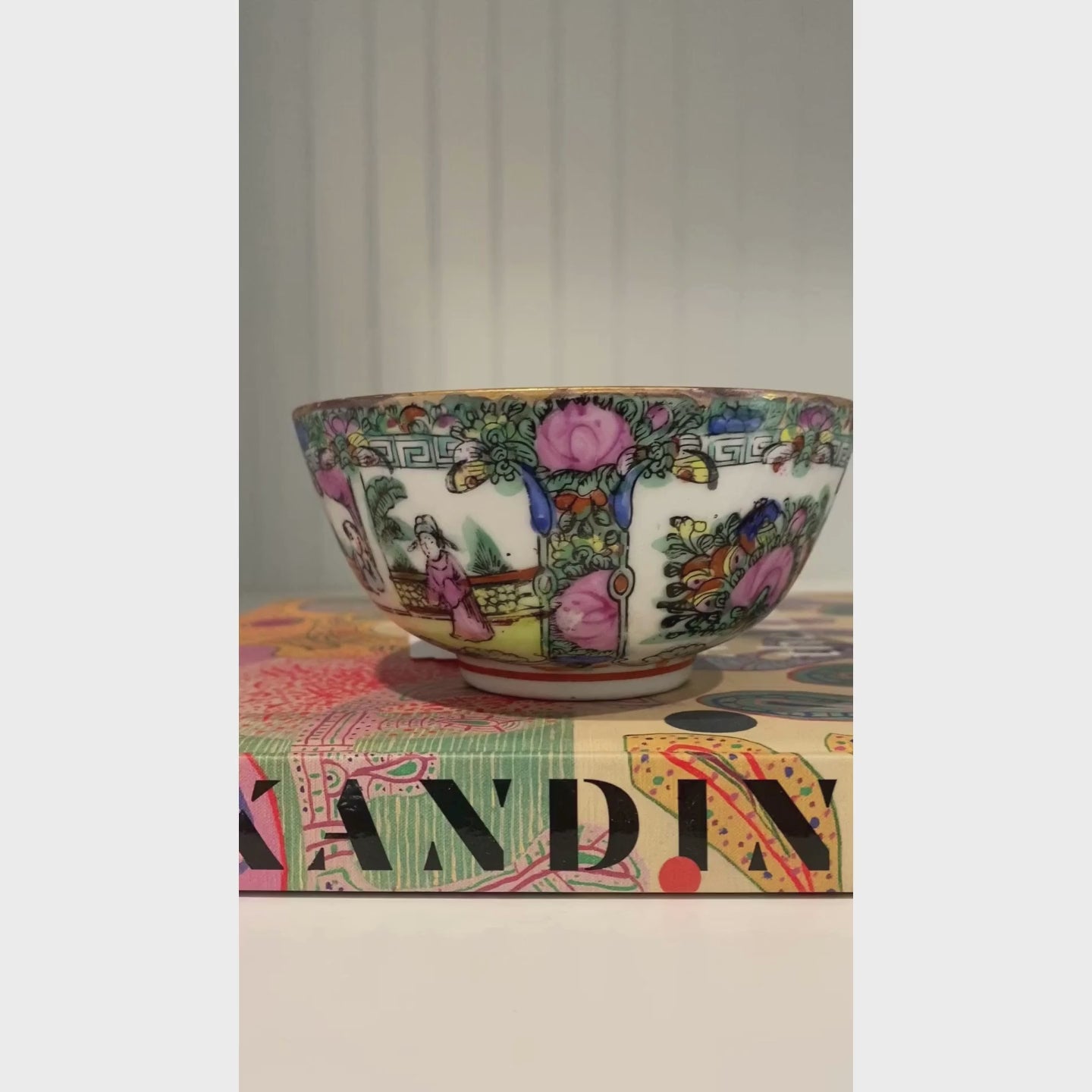 The colors are oh so good on this vintage Greek key Rose Famille bowl! The perfect pop to a side table or coffee table!